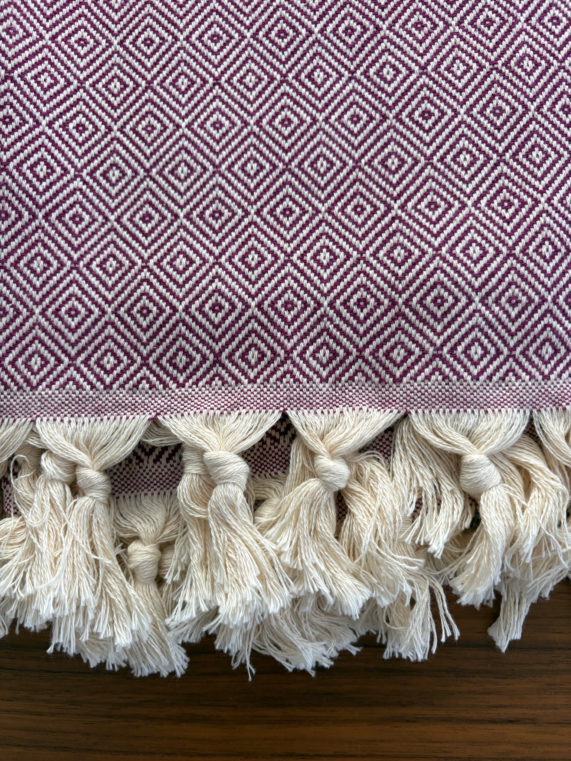 Burgundy Diamond Pattern Turkish Bath Towel