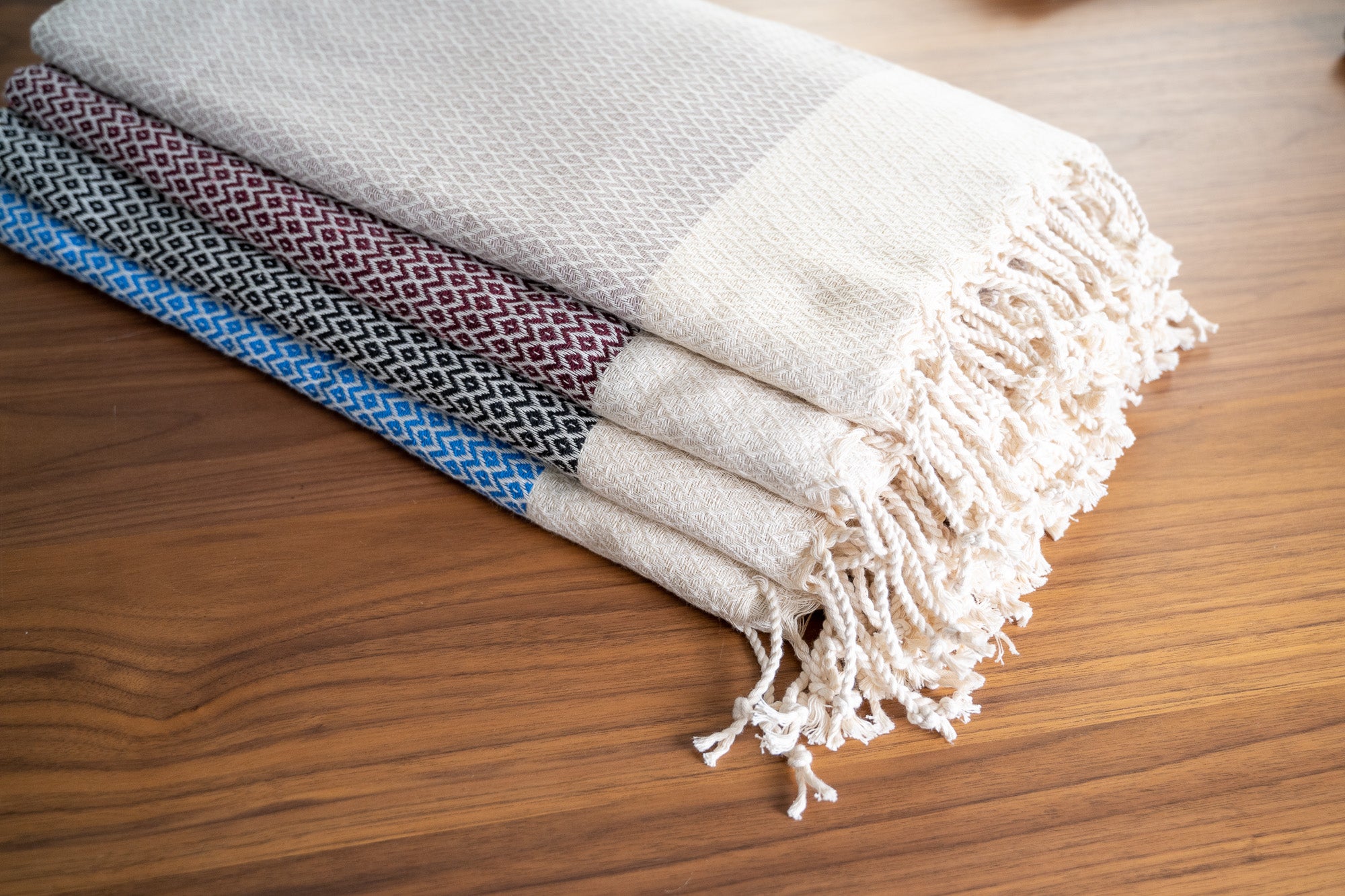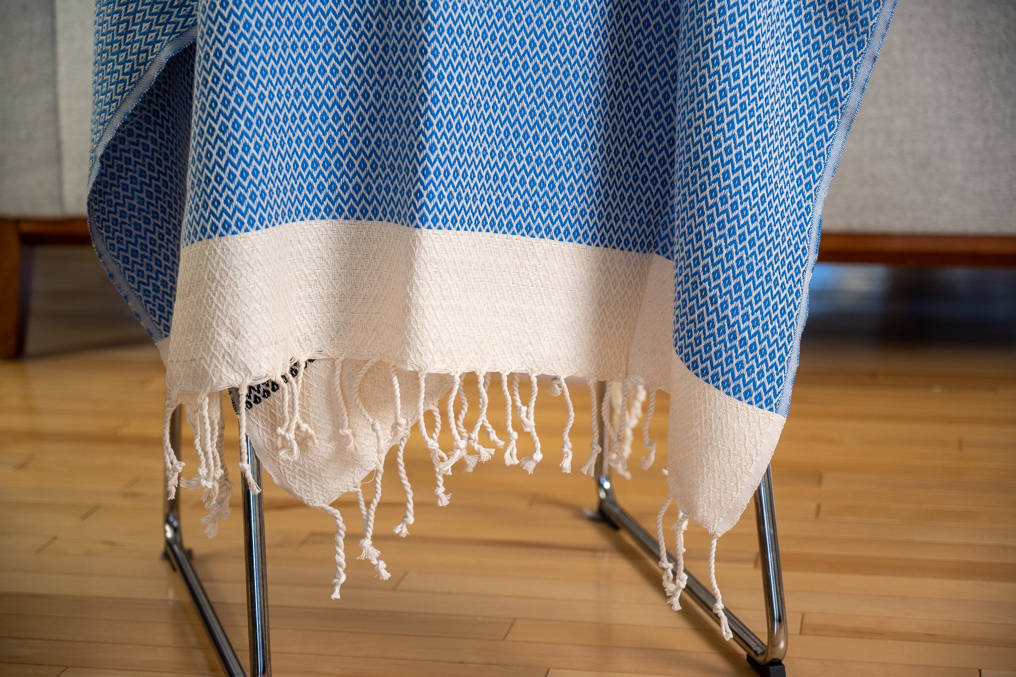 Blue Diamond Pattern Turkish Bath towel (Peshtemal)